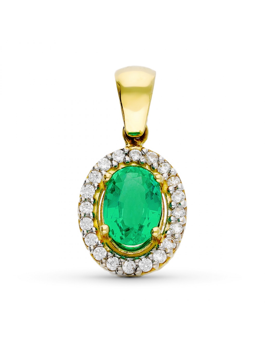 Colgante Bicolor Esmeralda y Circonitas Oro 1ª Ley 18 Kilates
