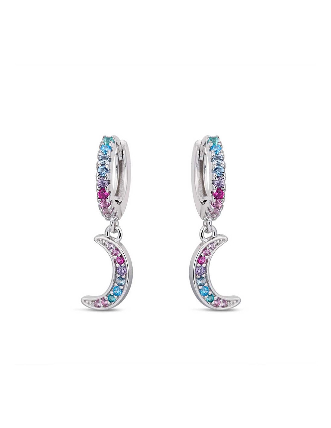 Pendiente Plata 1 Ley de Aro 12mm con Colgante Luna