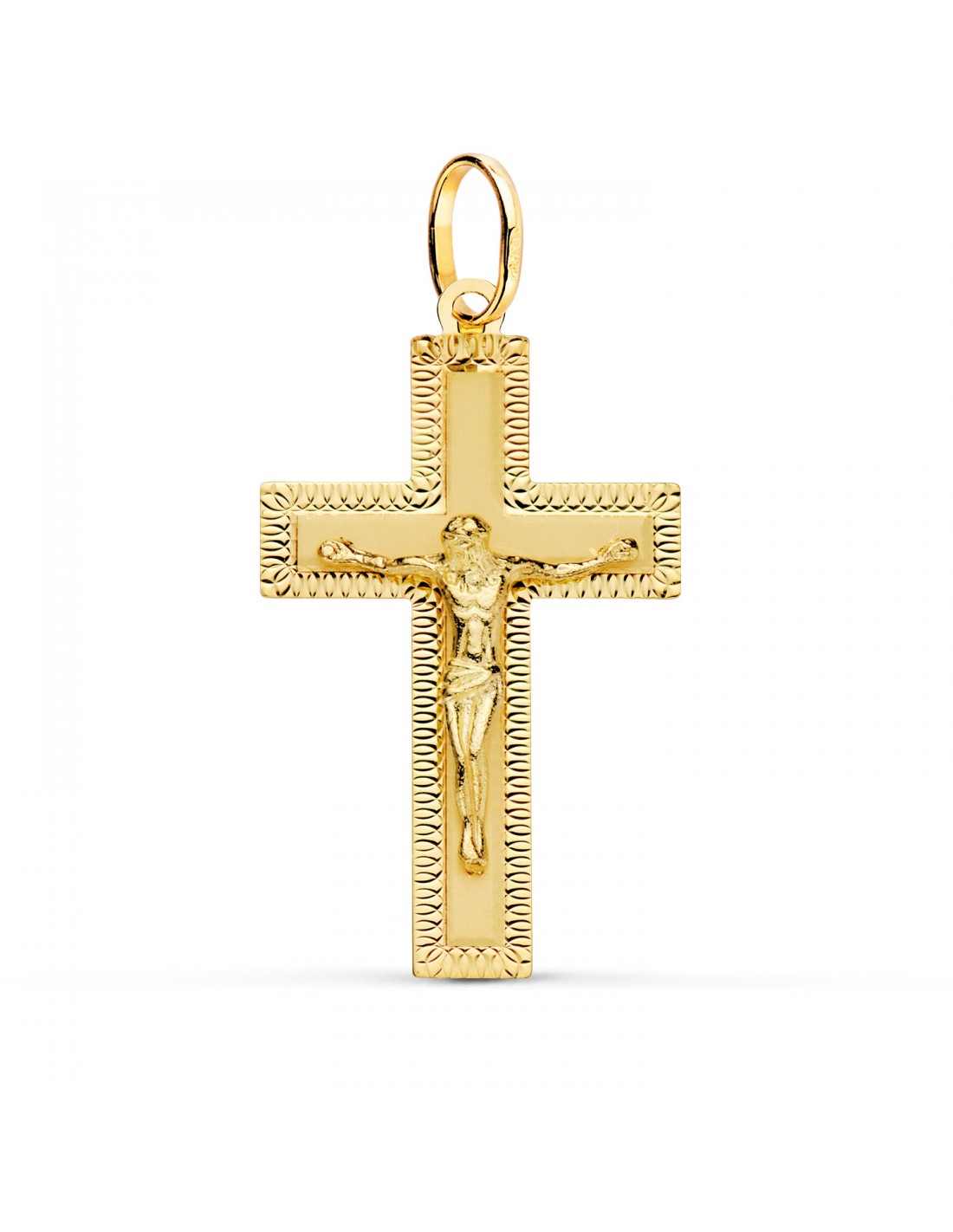 Esta impresionante cruz de oro de 1ª ley con la figura de Cristo es una joya clásica y de alta calidad, perfecta para quienes buscan un símbolo de fe con un diseño elegante. Con sus detalles tallados en el canto y un tamaño de 35x20 mm, esta pieza destaca por su belleza y su meticulosa elaboración. Ideal para llevar siempre contigo o para regalar en una ocasión especial.