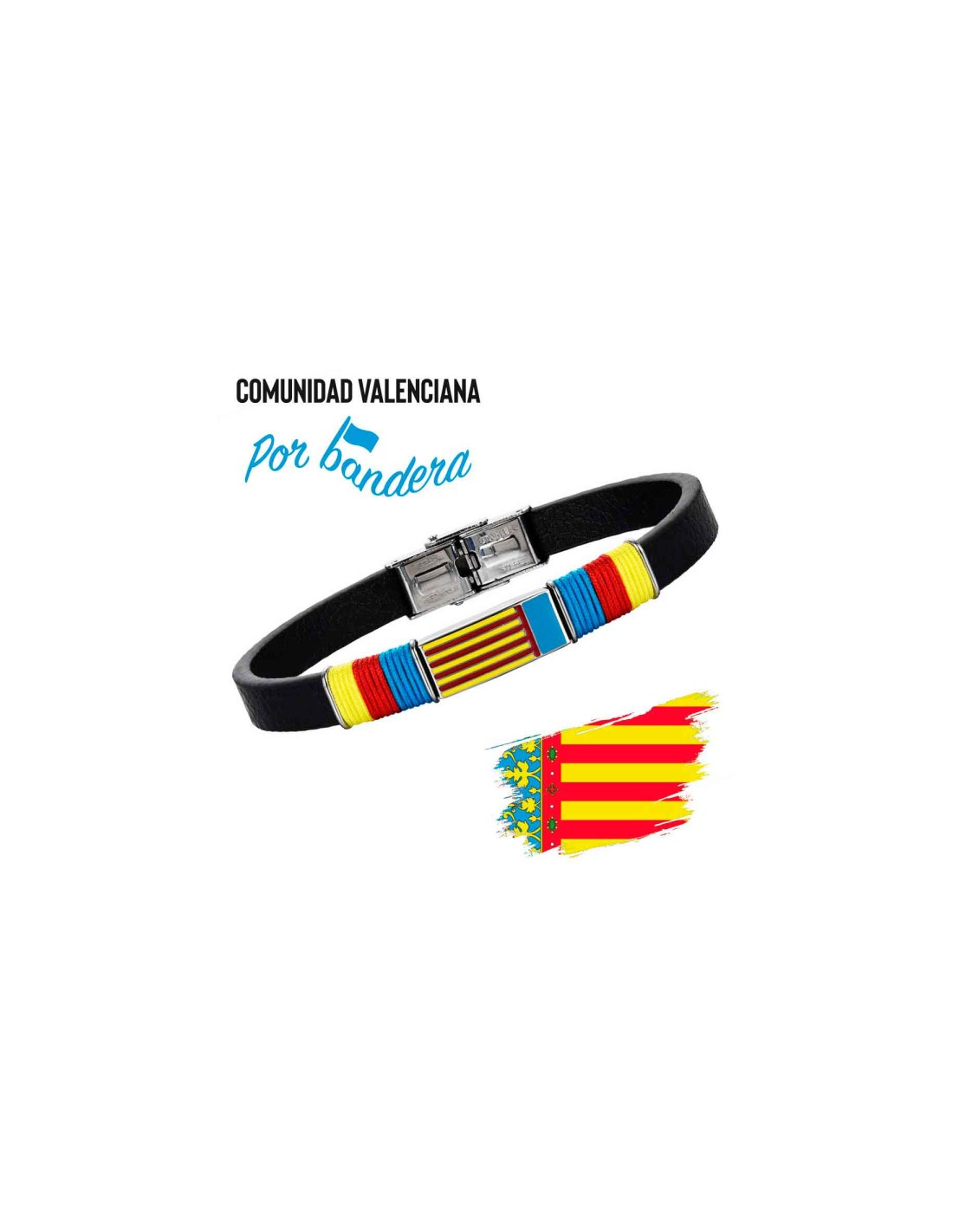Pulsera Bandera Comunidad Valenciana Acero y Piel Caballero