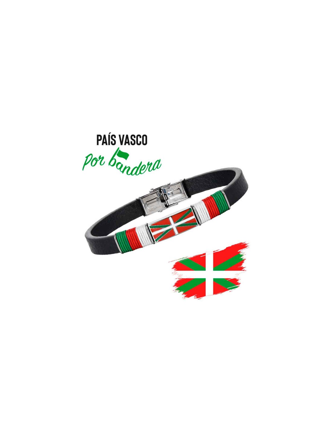 Pulsera Bandera Pais Vasco Acero y Piel Caballero