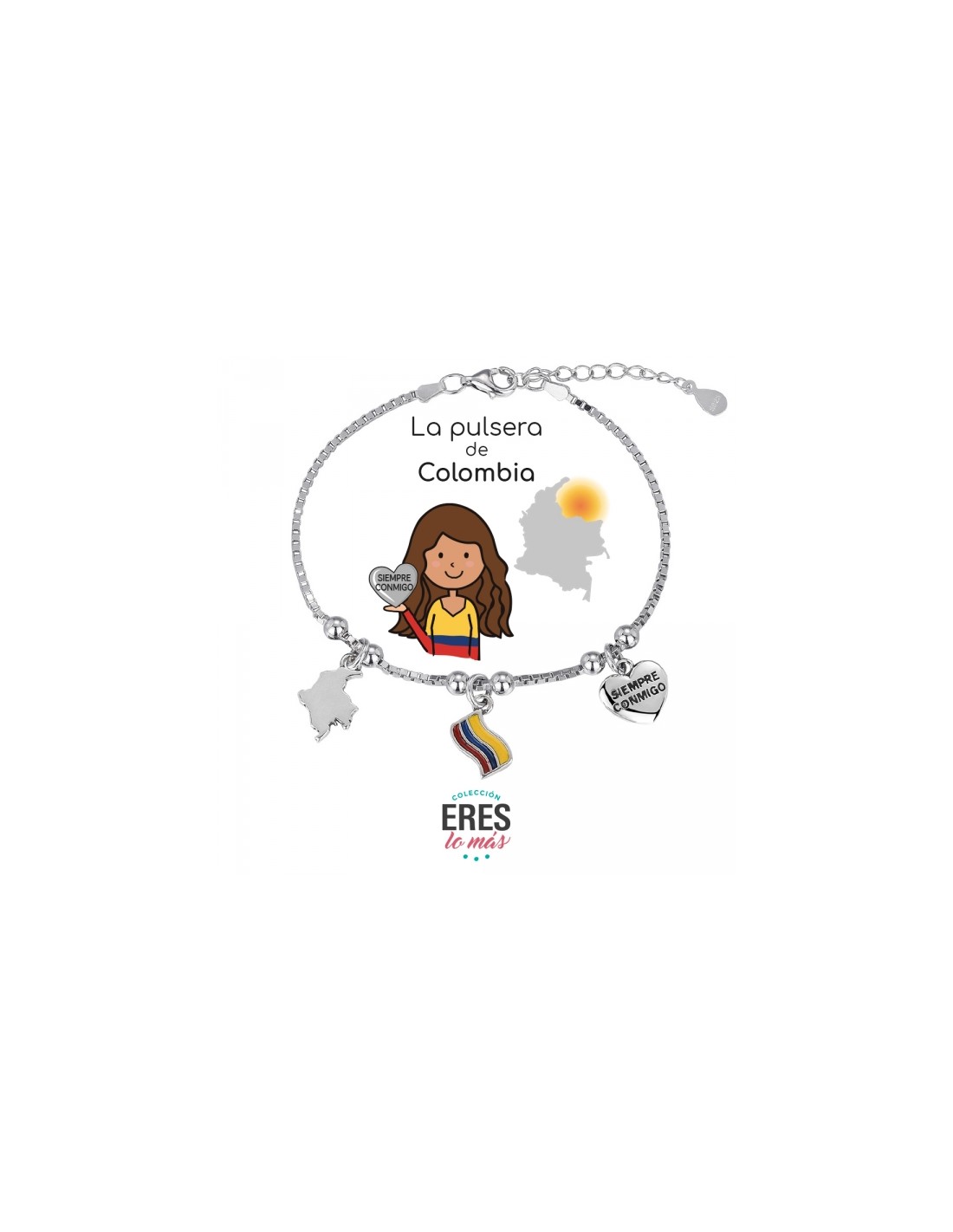 Pulsera Colombia Eres Lo mas Cadena Veneciana Rodiada Con 3 Colgantes