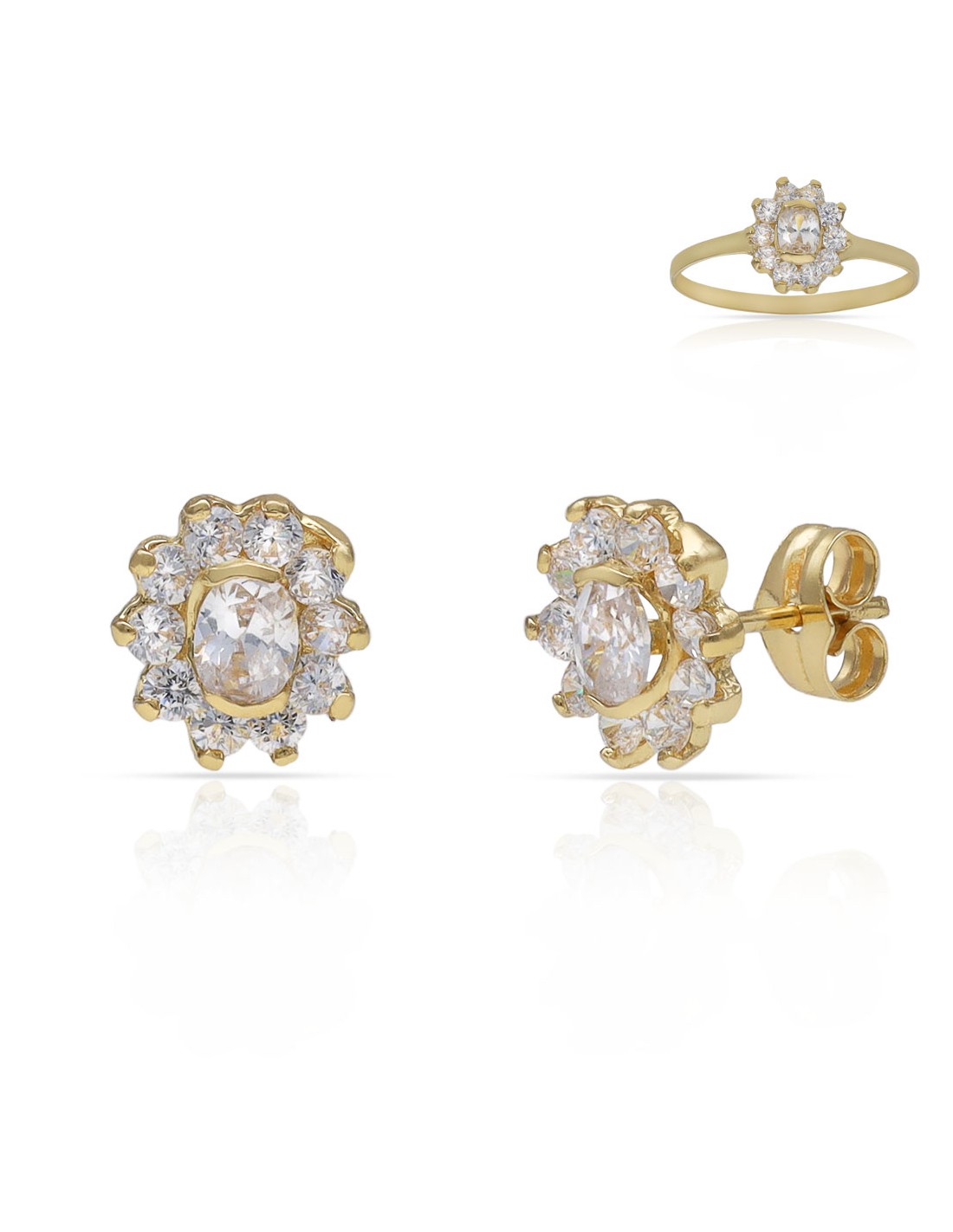 Pendientes Roseton Circonitas Oro 1ª Ley 18 Kilates