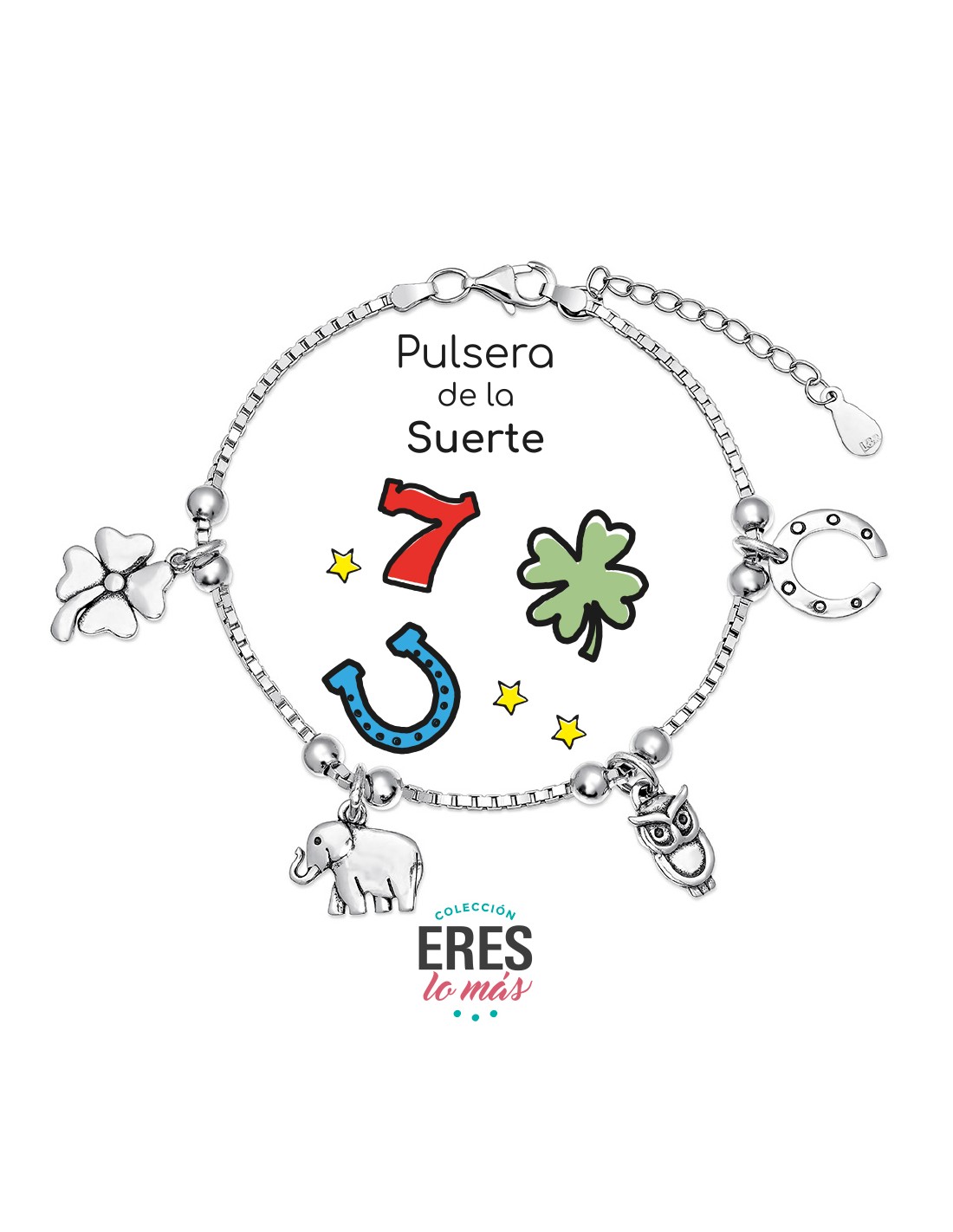 Pulsera Suerte Plata Rodiada 1ª Ley 925mm