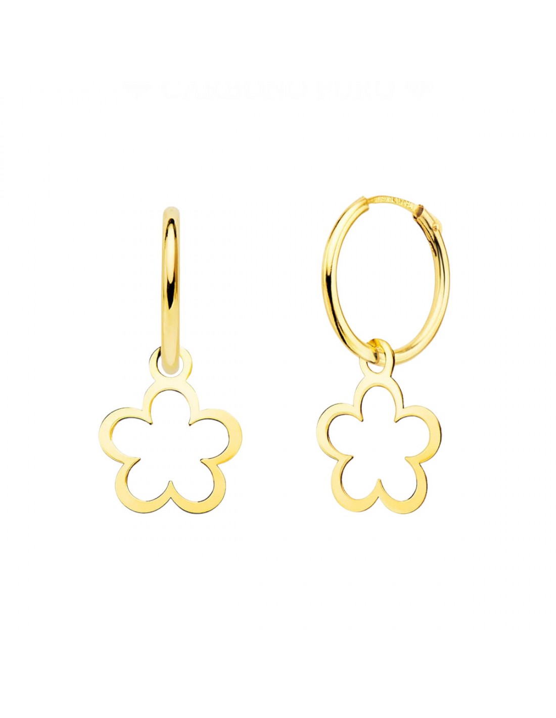 Estos elegantes y refinados pendientes con aro combinan la belleza atemporal del oro amarillo con la delicadeza de una exquisita margarita.