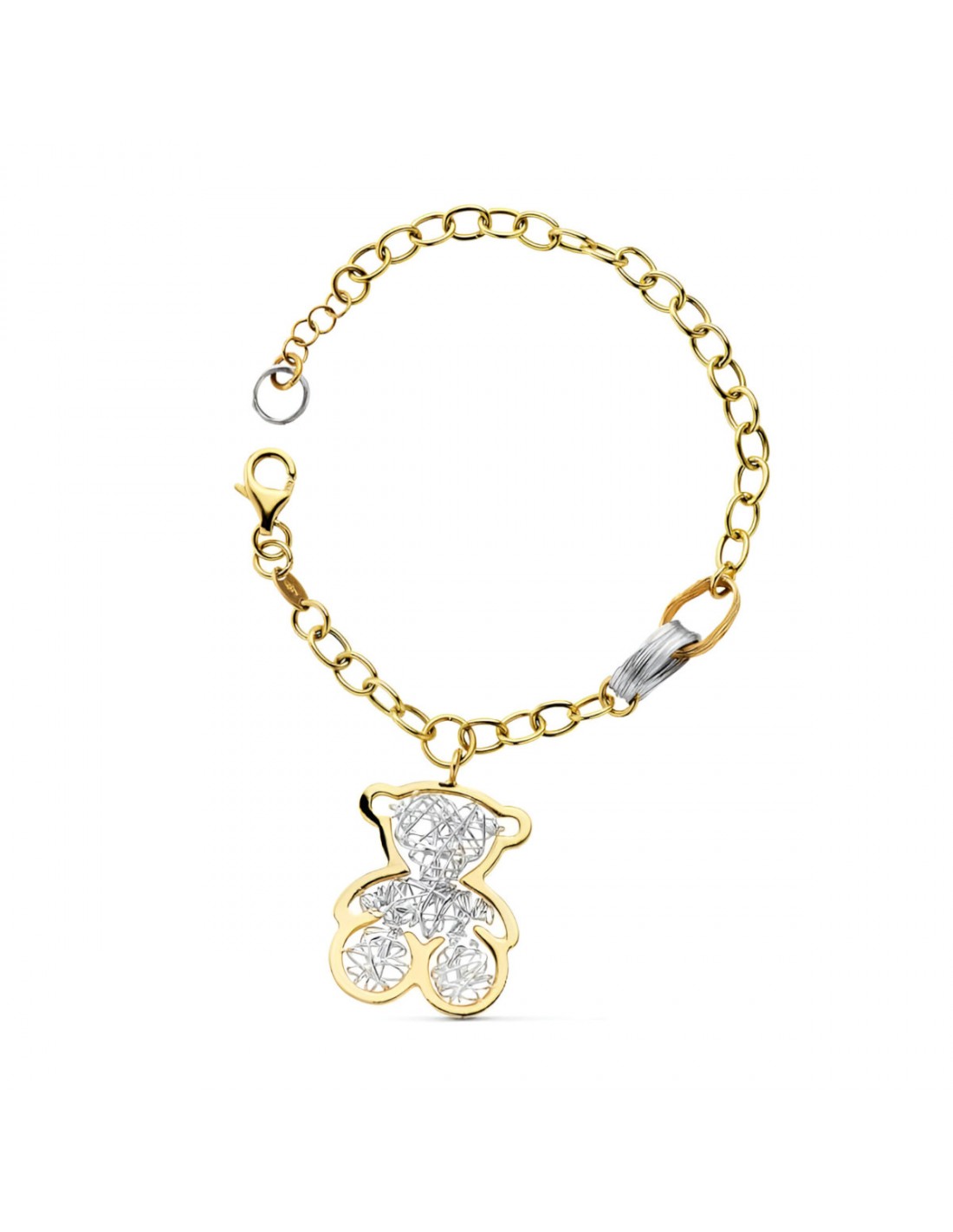 - Pulsera Bicolor Oso Oro 1ª Ley 18 Kilates