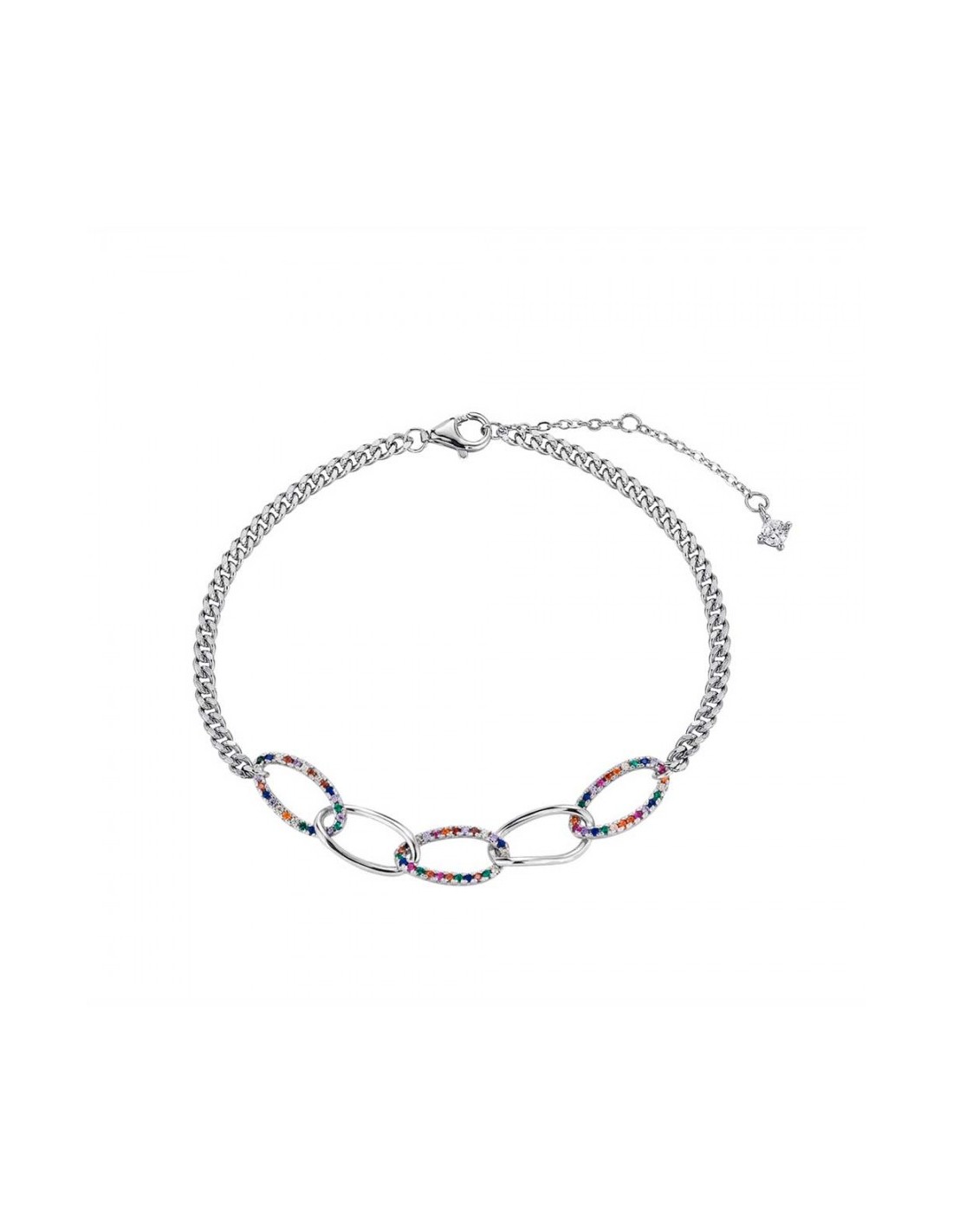 Pulsera Rodiada Eslabones Circonitas Multicolor Plata 1ª Ley 925mm