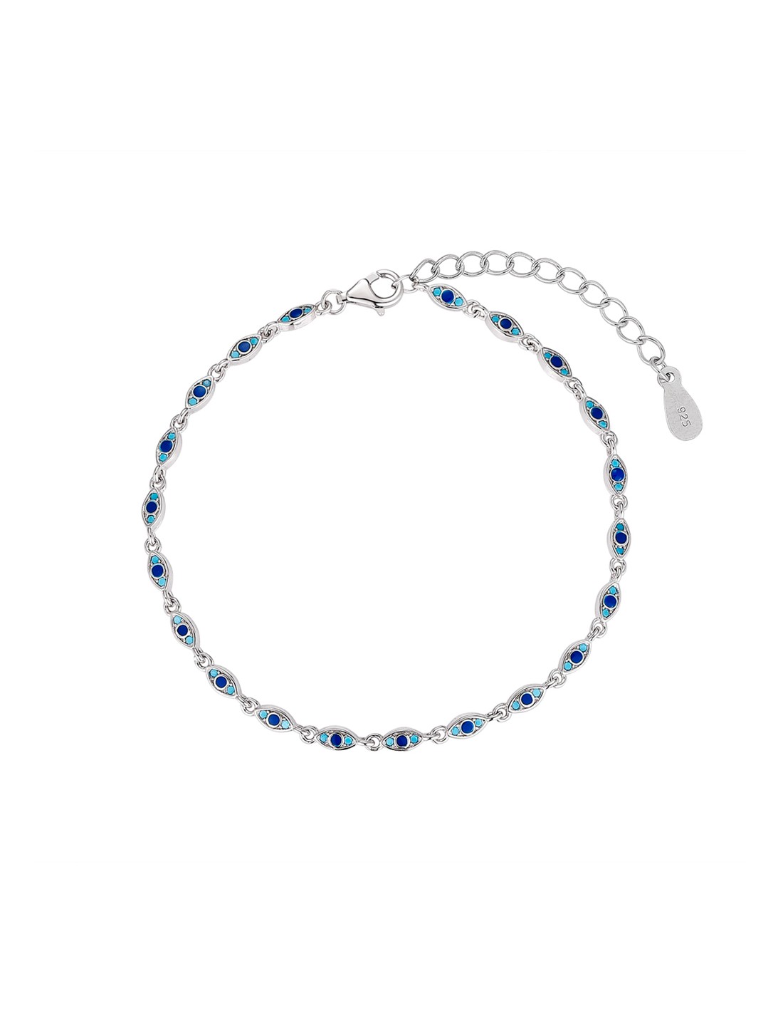 Pulsera Rodiada Ojos Con Zafiros Y Turquesas Plata 1ª Ley 925mm